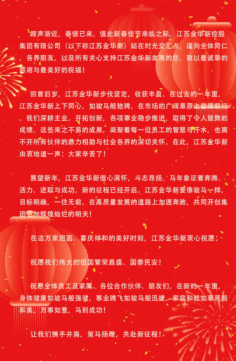 江苏金华新控股集团有限公司陪你跃入马年!